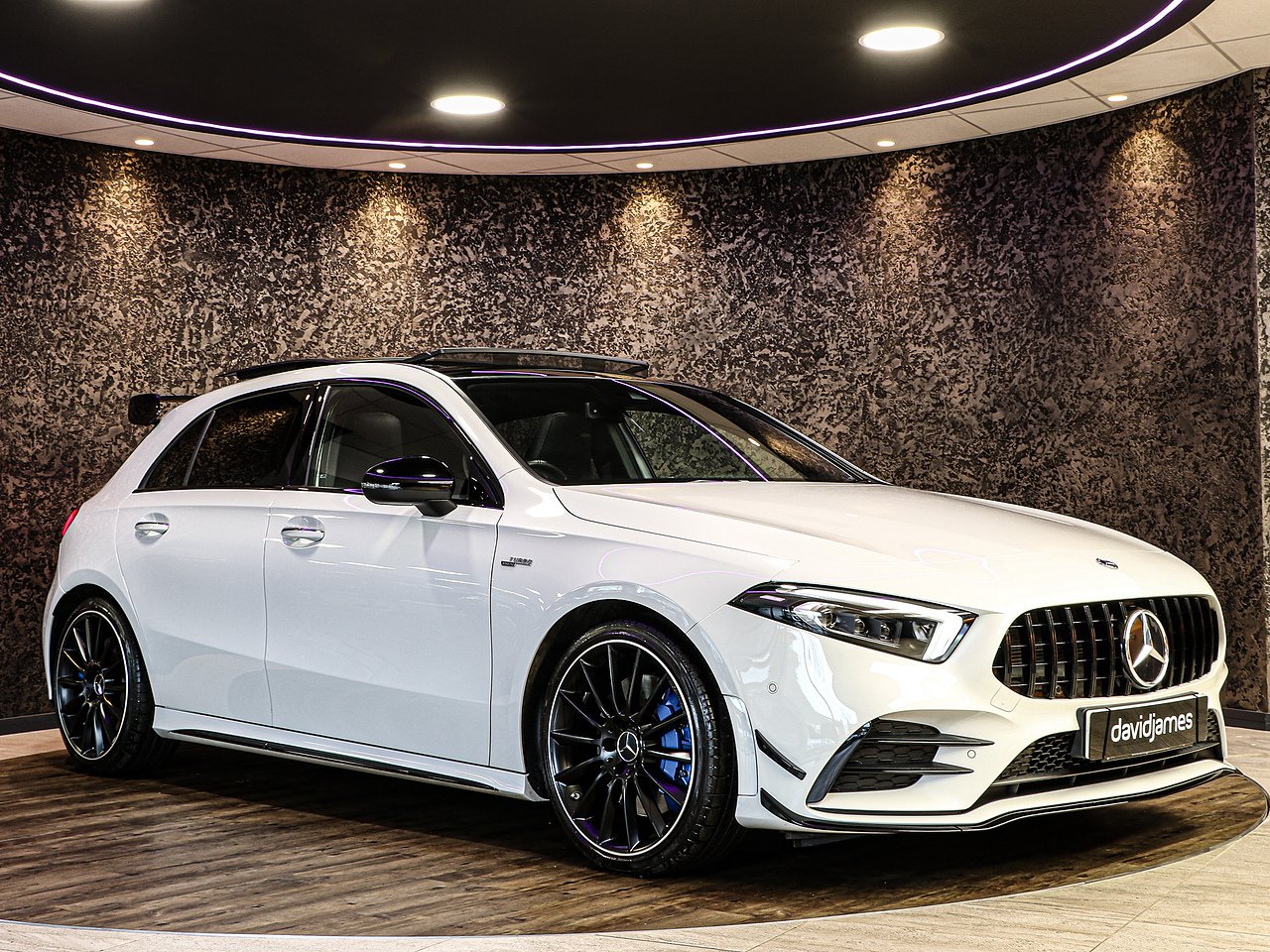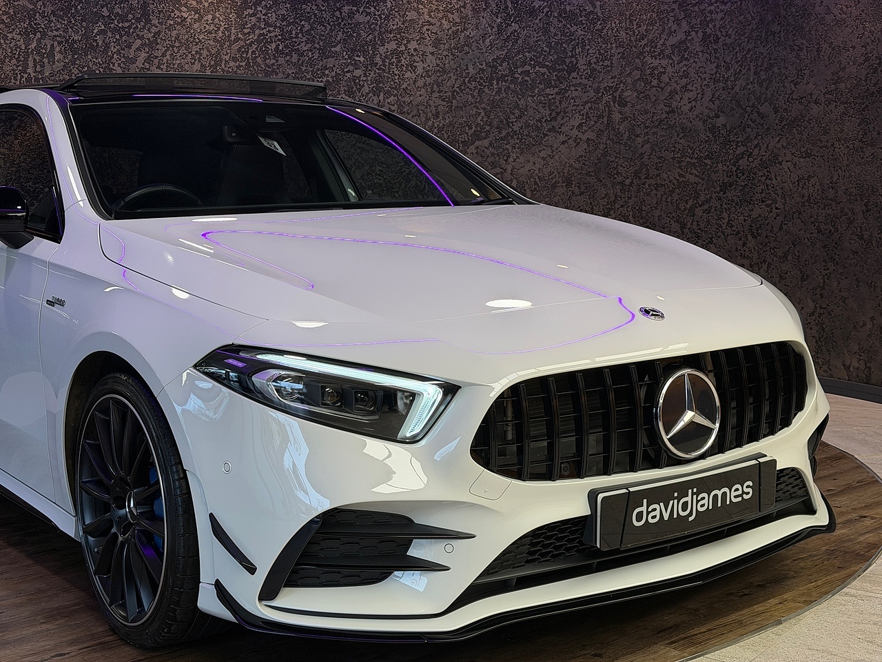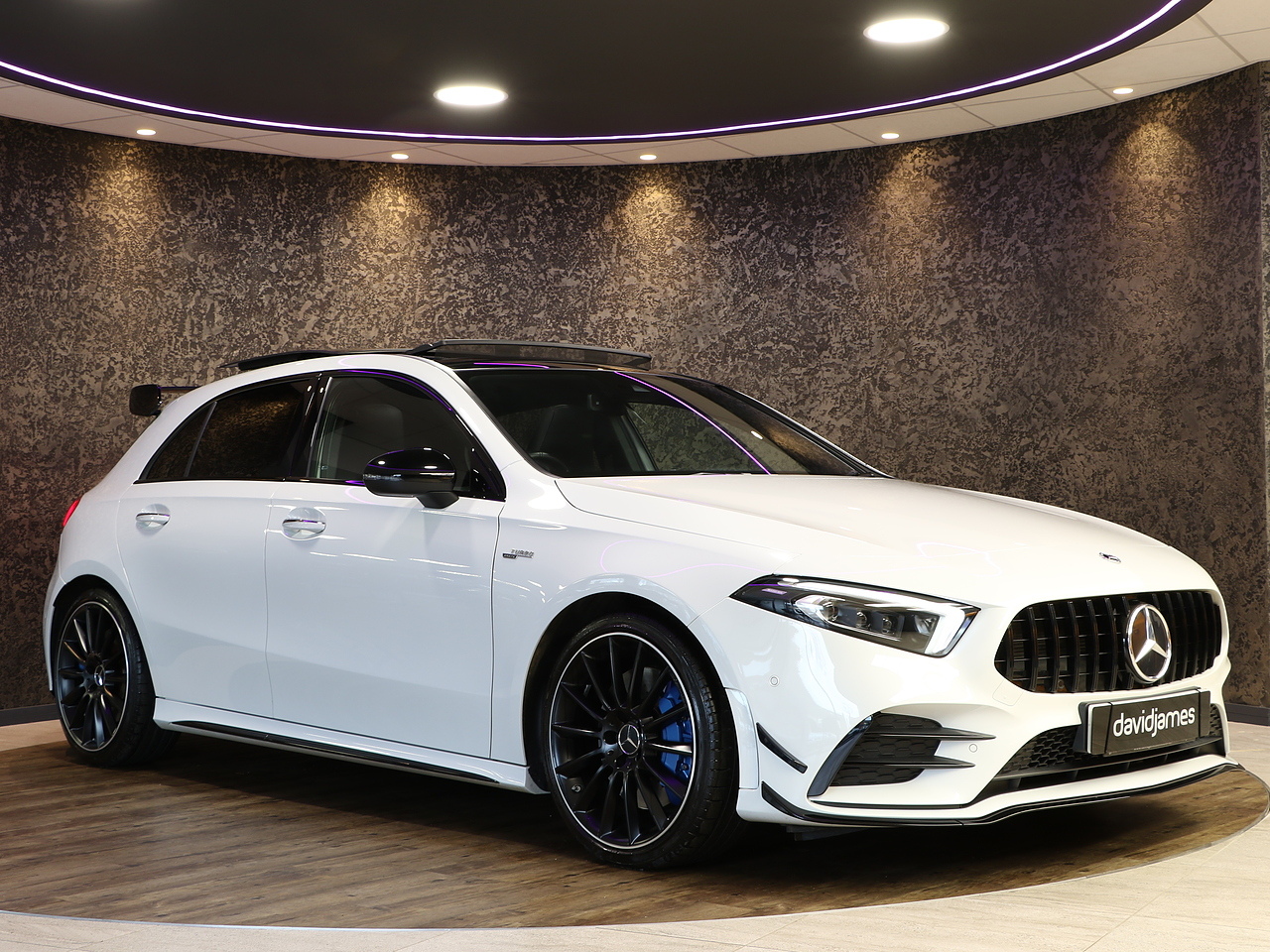 This stunning Mercedes-AMG A 35 4MATIC Premium Plus offers the perfect blend of everyday luxury, cutting-edge technology and exhilarating AMG performance. Finished in a striking exterior, this Premium Plus model delivers standout road presence with its aggressive AMG body styling with a Aero kit.