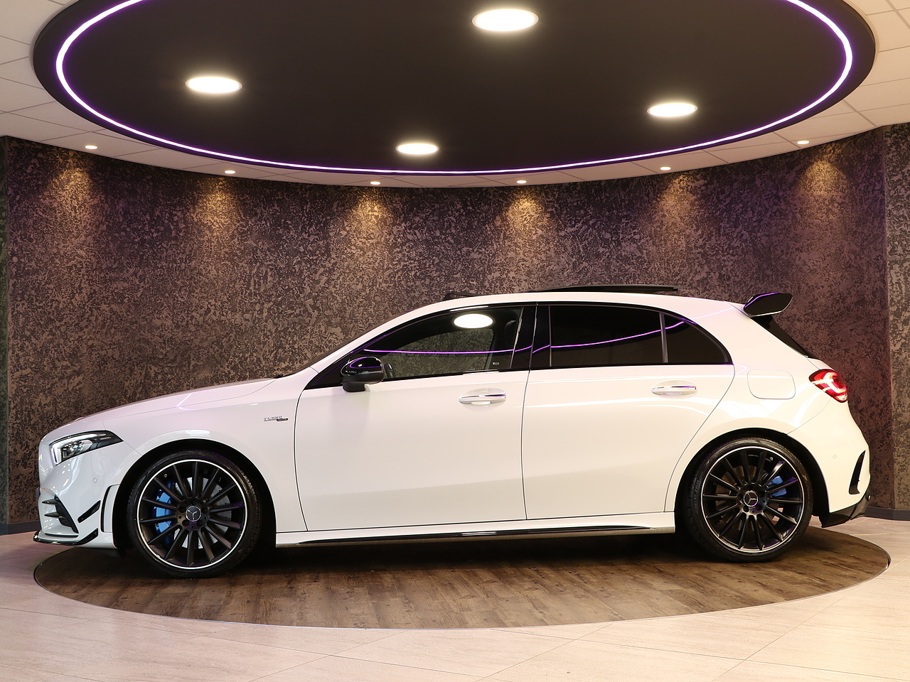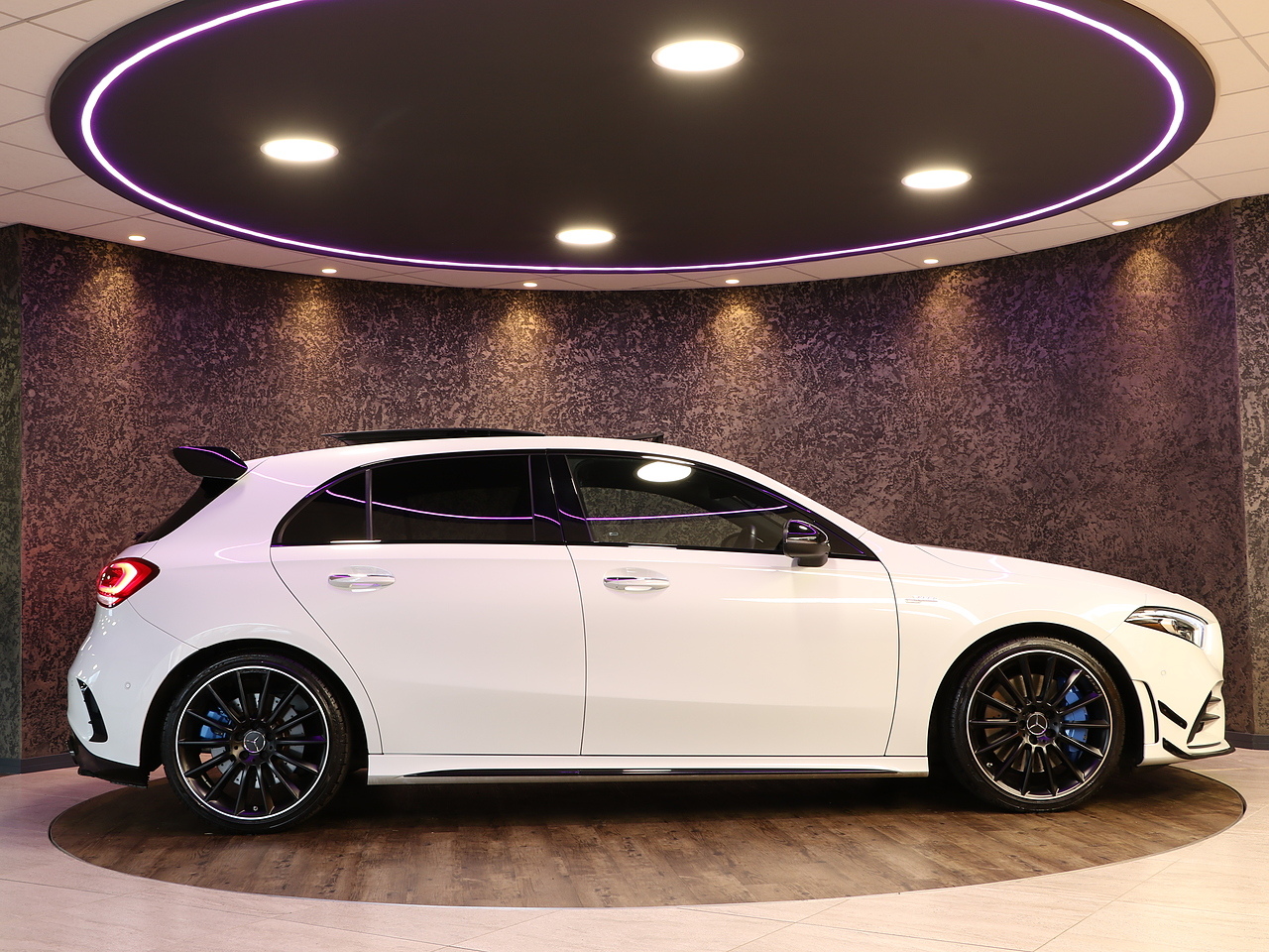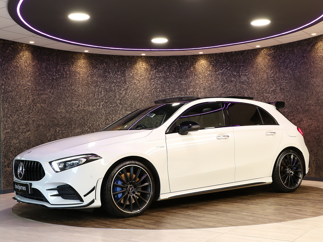 This stunning Mercedes-AMG A 35 4MATIC Premium Plus offers the perfect blend of everyday luxury, cutting-edge technology and exhilarating AMG performance. Finished in a striking exterior, this Premium Plus model delivers standout road presence with its aggressive AMG body styling with a Aero kit.
